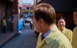 이재명 대통령이 지난 12일 서울 용산구 이태원 참사 현장에 조성된 ‘10·29 기억과 안전의 길’을 방문하고 있다. 전속사진사 위성환 작가가 찍은 이 사진에서 초점이 맞은 곳은 이 대통령이 아니라 이 대통령 시선이 닿은 참사가 일어난 골목이다. 사진 대통령실 …