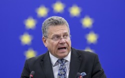 마로스 세프코비치 EU(유럽연합) 무역·경제안보 담당 집행위원이 6일(현지시간) 프랑스 스트라스부르에서 열린 유럽의회 본회의에 참석해 발언하고 있다. EPA=연합뉴스 유럽연합(EU)이 미국과의 관세 협상이 불발될 경우를 대비해 최대 1000억 유로(약 1…