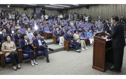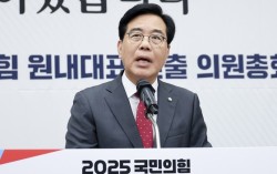 송언석 국민의힘 원내대표 후보가 16일 오후 국회에서 열린 2025 원내대표 선출을 위한 의원총회에서 정견발표를 하고 있다. 임현동 기자 국민의힘 신임 원내대표로 송언석(3선·경북 김천) 의원이 선출됐다. 국민의힘은 16일 국회에서 의원총회를 열고 …