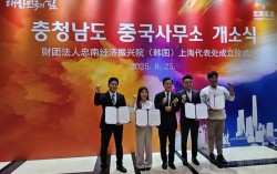 25일 중국 상하이 진지앙호텔에서 충남 중국사무소 개소식이 열렸다. 김방현 기자 충남도가 중국 상하이에 사무소를 개소했다. 이에 충남도 외국 사무소는 7개로 늘었다. 이들 외국 사무소는 지역 기업의 수출 전진기지 노릇을 톡톡히 하고 있다. 충남 기업이 지…