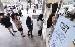 지난 20일 서울 시내 한 SK텔레콤 공식인증 대리점 앞에 고객들이 유심 교체를 위해 길게 줄을 서 기다리고 있다. 연합뉴스 SK텔레콤 해킹 사건을 조사 중인 민관 합동 조사단이 KT와 LG유플러스의 해킹 피해 여부에 대해서도 직접 조사로 방침을 전환했다…