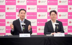 1일 오전(현지시간) 'MWC 26' 행사가 열리는 스페인 바르셀로나에서 이상엽 LG유플러스 CTO(최고기술책임자, 왼쪽)와 임우형 LG AI연구원장이 기자간담회를 진행하고 있다. 사진 LG유플러스 LG AI(인공지능) 연구원이 자체 모델 ‘K-엑사원’을 전 세계…