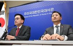 24일(현지시간) 미국 워싱턴 DC 재무부 청사에서 열린 ‘한ㆍ미 2+2 통상 협의’ 시작에 앞서 안덕근 산업통상자원부 장관, 최상목 경제부총리 겸 기획재정부 장관, 스콧 베센트 미국 재무부 장관, 제이미슨 그리어 미국무역대표부(USTR) 대표(왼쪽부터)가 기념사진을 …