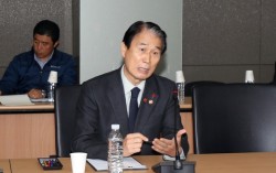 지난해 12월 10일 오후 권오을 국가보훈부 장관이 제주4·3평화공원에서 4·3유족회와 만나 박진경 대령 국가유공자 논란에 송구스럽다는 입장을 밝히고 있다. 앞서 국가보훈부는 4·3학살을 주도한 박진경 대령을 국가유공자로 등록해 논란이 되자 사과했다. 뉴스1 …
