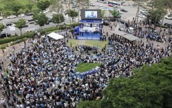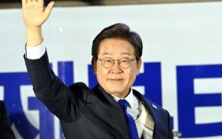 제21대 대통령이 된 이재명 데텅량이 4일 서울 여의도 국회 앞에 마련된 더불어민주당의 국민개표방송시청 현장에서 지지자들에게 감사 인사를 하고있다. 김성룡 기자 6·3 대선에서 승리한 이재명 대통령은 4일 중앙선거관리위원회에서 공식 발표하면서 '당선인' …