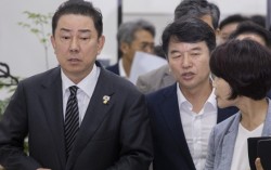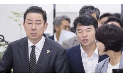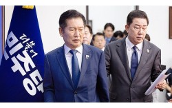 더불어민주당 김병기 원내대표와 한정애 정책위의장, 문진석 원내수석부대표가 11일 국회에서 열린 정책조정회의 내부 회의를 마친 뒤 원내대표회의실로 입장하고 있다. 연합뉴스 더불어민주당과 국민의힘의 특검법 개정안 합의가 불과 14시간 만에 증발됐다. …