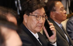 권성동 국민의힘 의원이 11일 서울 여의도 국회에서 열린 의원총회에서 전화 통화를 하고 있다. 이날 본회의에서는 권 의원에 대한 체포동의안이 상정될 것으로 전망된다. 연합뉴스 국민의힘이 11일 불법 정치자금 수수 혐의로 구속영장이 청구된 권성동 국민의힘 의원에 대…