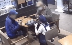 경기 안산시의 한 카페 점주(가운데)가 농인 고객에게 커피를 가져다주며 수어로 “맛있게 드세요”라고 인사하자 한 고객(오른쪽)이 엄지를 들어 올려 보였다. 사진 이디야커피 인스타그램 캡처 경기 안산시의 한 카페를 찾은 농인 손님에게 수어로 응대한 점주의 …