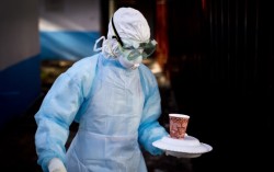 지난 2014년 10월 8일 케냐 나이로비의 케냐타 국립병원에서 의료진이 마르부르크 바이러스 보균자와 접촉한 후 격리 중인 남성을 수용하는 격리 텐트로 식사를 나르고 있다. AP=연합뉴스 에티오피아에서 마르부르크병으로 3명이 숨졌다고 현지 보건부가 17일(현지시간…