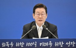 이재명 대통령이 취임 100일째가 되는 11일 오전 서울 청와대 영빈관에서 ‘회복을 위한 100일, 미래를 위한 성장' 기자회견을 하고 있다. 대통령실사진기자단 이재명 대통령이 취임 100일 일성으로 "모든 국민을 아우르고 섬기는 '모두의 대통령'이 되겠다는 약…