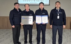 박종구 미추홀구시설관리공단 이사장(오른쪽 두 번째)이 인권경영시스템 인증식을 진행, 공단 관계자들과 함께 인증서와 인증 현판을 들고 기념촬영을 하고 있다. 중소벤처기업인증원(원장 엄진엽, KOSRE)은 인천광역시 미추홀구시설관리공단(이사장 박종구)이 인권…