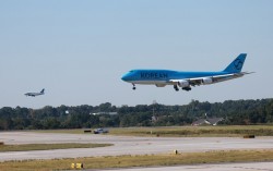 미국 조지아주 현대차그룹-LG에너지솔루션 배터리 합작 공장(HL-GA 배터리회사) 건설 현장에서 구금된 한국인을 태울 대한항공 전세기가 10일(현지시간) 하츠필드-잭슨 애틀랜타 국제공항에 착륙하고 있다. 연합뉴스 정부가 미국 이민당국에 의해 현지에서 체포…