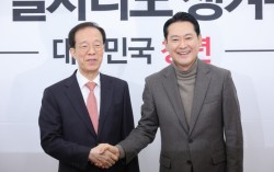 장동혁 국민의힘 대표(오른쪽)가 16일 국회에서 이석연 국민통합위원장을 만나 인사말을 하고 있다. 임현동 기자 이석연 국민통합위원장이 16일 장동혁 국민의힘 대표에게 “올바른 길을 가 달라”고 말했다. 지난 11일 정청래 더불어민주당 대표에게 “국론 분열과 국민 …