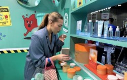 지난해 7월 미국 LA 컨벤션센터에서 열린 '케이콘(KCON) LA 2024'에서 틱톡 인플루언서 지아 가브리엘라가 한국 화장품을 체험해보고 있다. 연합뉴스 K뷰티 산업이 미국 트럼프 행정부의 관세 조치로 불안감에 휩싸여 있다. 국내 화장품 수출액의 16%를 차지…