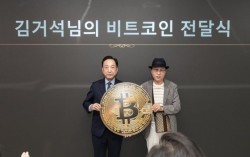 대한적십자사는 후원자 김거석씨(오른쪽)가 비트코인 1개를 기부했다고 13일 밝혔다. 지난 11일 적십자사 본사 서울사무소에서 열린 기부금 전달식에서 김씨와 김철수 적십자 회장이 기념촬영을 하고 있다. 사진 대한적십자사 국내에서 개인이 고액의 디지털자산을 기부한 첫…