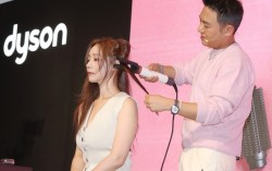 28일 서울 성동구 XYZ서울에서 열린 다이슨 프레스 기술 소개 행사에서 김선우 다이슨 스타일링 앰배서더가 신제품 '에어랩 코안다 2x 멀티 스타일러 앤 드라이어'로 헤어 스타일링 시연을 하고 있다. 연합뉴스 “바람만으로 부스스한 반곱슬 모발을 생머리로 …