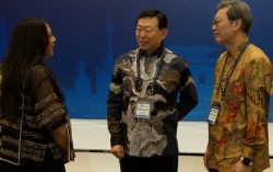 신동빈 롯데그룹 회장(가운데)과 김창범 한국경제인협회 부회장(오른쪽 첫째)이 28일(현지시간) 인도네시아 자카르타 랭햄 호텔에서 열린 ‘한-인도네시아 비즈니스 라운드테이블’에서 인도네시아 관계자와 대화하고 있다. 한경협 제공 신동빈 롯데 회장이 이끄는 …