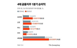 4대 금융그룹(KB·신한·하나·우리)이 1분기에만 5조원에 육박하는 순이익을 기록했다. 10조원에 달하는 이자이익을 기반으로 역대 최대 이익을 거뒀지만 마냥 웃을 순 없는 상황이 연출됐다. 내수부진 장기화로 인해 연체율과 부실채권 규모가 커지고 있어 전망에 먹구름이 끼…