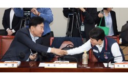 최저임금위원회 사용자위원인 류기정 한국경영자총협회 전무(왼쪽)와 근로자위원인 이미선 민주노총 부위원장이 22일 정부세종청사에서 열린 내년도 최저임금 수준을 결정하기 위한 최저임금위원회 1차 전원회의에서 만나 악수하고 있다. 연합뉴스 내년도 최저임금을 결정…