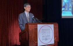 이창용 한국은행 총재가 21일(현지시간) 미국 뉴욕에서 외교정책협회(FPA)가 수여하는 메달을 받고 만찬사를 하고 있다. 사진 한국은행 이창용 한국은행 총재가 12ㆍ3 비상계엄 사태 이후 추가경정예산의 필요성을 강조하면서 ‘정치적 발언’ 논란에 휩싸인 데…