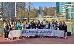 한국노인간호학회 교수 임상연수회에 참석한 학회 소속 교수들이 웨어러블 로봇 윔(WIM) 체험 후 기념촬영을 하고 있다. 앞줄 왼쪽에서 다섯 번째는 조은희 한국노인간호학회장(연세대학교 간호대학 교수). (사진 제공=위로보틱스) 웨어러블 로봇 글로벌 리딩기업…