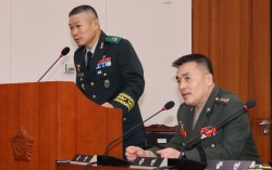 지난해 7월 국회에서 열린 '윤석열 대통령 탄핵소추안 발의 요청' 국민동의 청원 청문회 당시 김동혁 국방부 검찰단장과 박정훈 해병대 수사단장이 항명 사건 수사 과정과 관련한 질문에 대답하고 있다. 연합뉴스 순직해병 특검팀(특별검사 이명현)이 박정훈 해병대 수사단장…
