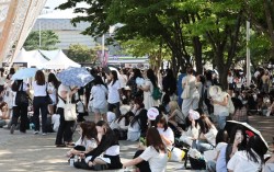 10일 서울 올림픽공원 KSPO돔(올림픽체조경기장)에서 폭발물 설치 신고가 접수돼 관중들이 대피해 있다. 연합뉴스 K팝 아이돌 더보이즈의 공연이 예정된 서울 송파구 올림픽공원 내 KSPO돔(올림픽체조경기장)에 폭발물이 설치됐다는 신고가 접수돼 관객 200…