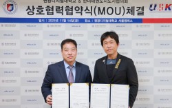 협약식 기념사진(좌. 윤민철 태권도스포츠재활학과장, 우. 한미태권도지도자협의회 아틀란타 지부 양복선 회장) 원광디지털대(총장 김윤철)가 14일 서울캠퍼스에서 한미태권도지도자협의회와 단체협약을 체결했다고 밝혔다. 이번 협약은 해외 기관과의 협력을 통해 학생…
