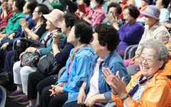 서울 중구 장충체육관 주경기장에서 열린 노인의 날 기념식에 참석한 어르신들이 기념공연을 즐기고 있다. 뉴스1 50세 이상 중장년층은 노후 시작 연령을 68.5세로 여기는 것으로 조사됐다. 노년의 적정한 생활 수준 유지를 위해선 월 198만원가량이 필요하다…