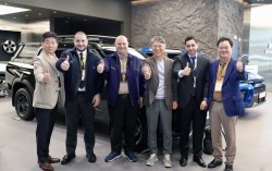 곽재선 KG모빌리티 회장(오른쪽 셋째)이 11일 글로벌 대리점 초청 행사에서 참석자와 기념사진을 촬영하고 있다. [사진 KG모빌리티] “이제 혼자서는 살아남기 어렵다.” 지난 11일 서울 강남구 KGM 익스피리언스 센터에서 만난 곽재선 KG모빌리티 …