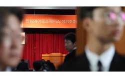 지난달 25일 경기도 성남상공회의소에서 열린 한화에어로스페이스 주주총회에 주주들이 참석하고 있다. 뉴스1 지난달 25일 오전 9시, 경기도 성남상공회의소에서 열린 한화에어로스페이스 주주총회. 이날 관심사는 회사가 주총 4일 전인 20일 공시한 3조6000억원 규모…