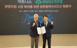 권영범 영림원소프트랩 대표이사(우)와 임각균 이트너스 대표이사(좌)가 기념 사진 촬영을 하고 있다 엔터프라이즈 솔루션 전문기업 영림원소프트랩(대표이사 권영범, 060850)은 경영지원 플랫폼 전문기업 이트너스(대표 임각균)와 전사적 자원관리(ERP, En…