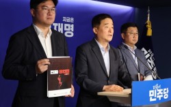 더불어민주당 선대위 신속대응단장 강득구 의원 등이 11일 서울 여의도 당사에서 국민의힘 김문수 대선 후보 망언집 공개 관련 브리핑을 하고 있다. 연합뉴스 더불어민주당은 11일 국민의힘 김문수 대선후보의 과거 발언을 모은 ‘김문수 망언집’을 공개했다. 이날 민…