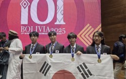 올림피아드 금메달을 받은 변재우·이유찬·정민찬·우민규 학생(왼쪽부터). [사진 과기정통부] 볼리비아 수크레에서 열린 제37회 국제정보올림피아드에서 한국 대표단 전원이 금메달을 받았다. 이 대회에 참가하기 시작한 1992년 이래 최초다. 한국은 중국·볼리비…