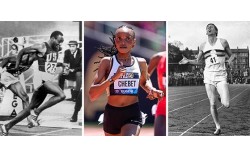 체벳(가운데)은 육상 여자 5000m 사상 최초로 14분의 장벽을 넘었다. 하인스(왼쪽)는 100m의 10초 벽, 배니스터(오른쪽)는 1마일의 4분 벽을 가장 먼저 깼다. [AFP·AP=연합뉴스, 중앙포토] 지난 6일 미국 오리건주 유진에서 열린 국제육상…