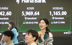 코스피가 '롤러코스터 장세'를 보인 끝에 사상 최고가를 또 경신한 24일 서울 중구 하나은행 딜링룸에서 직원이 업무를 보고 있다. 연합뉴스 코스피 지수가 24일 종가 기준 사상 최고치로 마감했다. 코스피는 6000선 돌파도 목전이다. 삼성전자와 SK하이닉스는 각각…