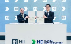 HD현대와 헌팅턴 잉걸스는 7일(현지 시간) '선박 건조 생산성 향상 및 첨단 조선 기술 협력을 위한 양해각서'를 체결했다. 주원호 HD현대중공업 특구선사업대표(오른쪽)과 브라이언 블란쳇 잉걸스 조선소 사장이 참석했다. 사진 HD현대 HD현대가 미국 최…