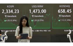 서울 중구 하나은행 딜링룸 전광판에 종가 현황이 표시돼 있다. 이날 코스피는 전 거래일 종가와 비교해 포인트6.03(p)(0.26%) 상승한 2334.23으로 마감했다. 달러·원 환율은 오름세를 보이고 있다. 2025.4.8/뉴스1 1달러=1473.2원.…