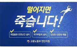이재명 대통령이 소셜미디어에 공유한 근로감독관 명함 이미지. 이 대통령은 산업현장에서 안전에 대한 경각심을 일깨우기 위해 고용노동부 장관의 명함에도 ‘떨어지면 죽습니다’는 문구를 추가할 것이라고 말했다. 연합뉴스 올해 1분기 산재 사망자 수가 17.5% …