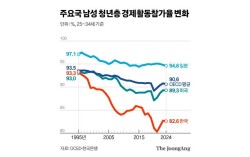 청년 남성들이 노동시장에서 설 자리를 잃어가고 있다. 지난 20여 년간 경제활동참가율 하락 폭이 경제협력개발기구(OECD) 국가 중 가장 컸다. 고학력 여성의 약진과 인공지능(AI)의 습격, 고령층의 정년 연장이라는 ‘삼중고’ 때문으로 풀이된다. 14일 한국은행 조사국…