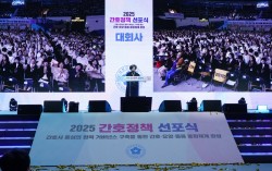 신경림 대한간호협회 회장이 17일 열린 ‘2025 간호정책 선포식’에서 대회사를 진행하고 있다. 사진 대한간호협회 "통합 돌봄체계, 간호사가 중심에 서겠다." 대한간호협회(간협)가 17일 '2025 간호정책 선포식'을 열고, 이러한 보건의료 정책 비전을 …