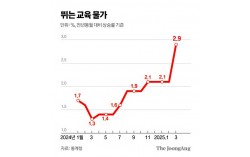 지난달 교육 물가가 2009년 금융위기 이후 가장 크게 올랐다. 7일 통계청에 따르면 지난달 교육 물가(지출목적별 분류)는 전년 동월보다 2.9% 상승했다. 2009년 2월(4.8%) 이후 16년1개월 만에 가장 높은 상승률이다. 교육 물가는 전체 소비자물가 상승률(2…