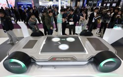 지난달 5일 서울 강남구 코엑스에서 열린 인터배터리 2025의 LG에너지솔루션 부스에 46시리즈 배터리가 적용된 전기차 하부 모형이 전시돼 있다. 연합뉴스 LG에너지솔루션이 북미 출하량 증가와 고환율에 힘입어 1분기 ‘깜짝 실적’을 냈다. 다만 전기차 캐즘(일시적…