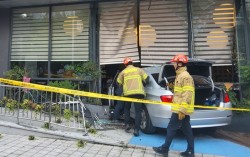 1일 오후 2시쯤 용인시 수지구 상현역 인근 한 식당으로 승용차가 돌진하는 사고가 났다. 사진 경기도소방재난본부 1일 오후 2시쯤 경기 용인시 수지구 상현역 인근 한 식당에 60대 남성 A씨가 몰던 승용차가 돌진하는 사고가 발생했다. 이 사고로 식당 내부에 …