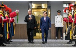 안규백 대한민국 국방부 장관과 나카타니 겐 일본 방위상이 8일 서울에서 열린 한일 국방장관 회담에서 의장대를 사열하고 있다. 사진 국방부=뉴스1 안규백 국방부 장관과 나카타니 겐 일본 방위상이 8일 서울에서 열린‘서울안보대화’를 계기로 한일 국방장관 회담을 개최하…