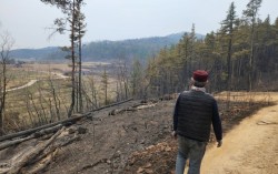 지난달 27일 경북 안동시 길안면 한 사과밭에서 농장주가 산불 피해 현장을 둘러보고 있다. 안동=김정석 기자 역대 최악의 산불로 피해를 본 농가에 정부가 4000억원 이상을 지원한다. 피해 지역이 주산지인 사과·마늘 등 농산물은 가격 불안이 우려되고 있어…