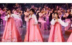 현송월 단장이 이끄는 북한 삼지연 관현악단을 비롯한 예술단이 지난 2018년 2월 8일 강원도 강릉시 교동 강릉아트센터에서 첫 공연을 하고 있다. 뉴스1 북한에서 남북 화해를 상징하는 노래로 유명한 ‘반갑습니다’의 공연이 금지됐다고 일본 교도통신이 29일 복수의 …