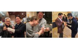 왼쪽부터 젠슨 황 엔비디아 CEO, 마크 저커버그 메타 CEO, 순다르 피차이 구글 CEO가 최태원 SK그룹 회장의 깁스에 각각 메시지를 남기고 있다. 사진 최태원 회장 인스타그램 캡처 최태원 SK그룹 회장이 자신의 손목 깁스에 글로벌 빅테크 수장들이 남…
