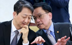 '한미 2+2 통상 협의' 정부 합동 대표단 공동 수석대표를 맡은 최상목 경제부총리 겸 기획재정부 장관(오른쪽)과 안덕근 산업통상자원부 장관이 21일 정부서울청사에서 열린 경제안보전략 태스크포스(TF) 회의에 참석해 논의하고 있다. 연합뉴스 24일로 확정…