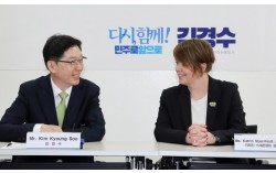 더불어민주당 김경수 대선경선 후보가 17일 경기도 고양시에서 카트린 스테른펠트 스웨덴 말뫼 시장과 간담회를 하고 있다. 김 후보는 '사람중심의 지속가능한 발전'에 관해 대화를 나눴다. 연합뉴스 김경수 더불어민주당 대선 경선 후보는 충청지역 권리당원 투표가…